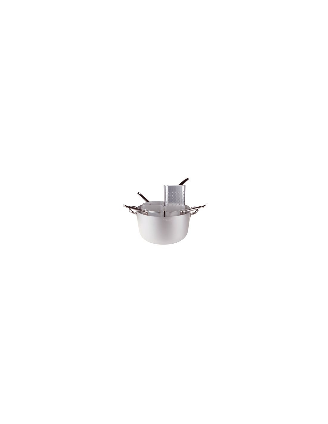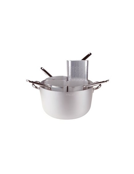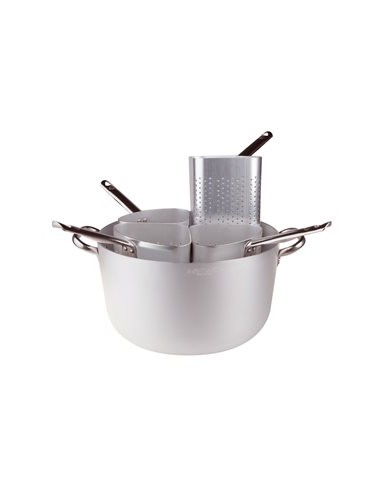 Casseruola in alluminio con 4 colapasta a spicchio alto, serie professionale, spessore mm.3, diametro cm. 36, altezza cm. 20, capacità litri 18.