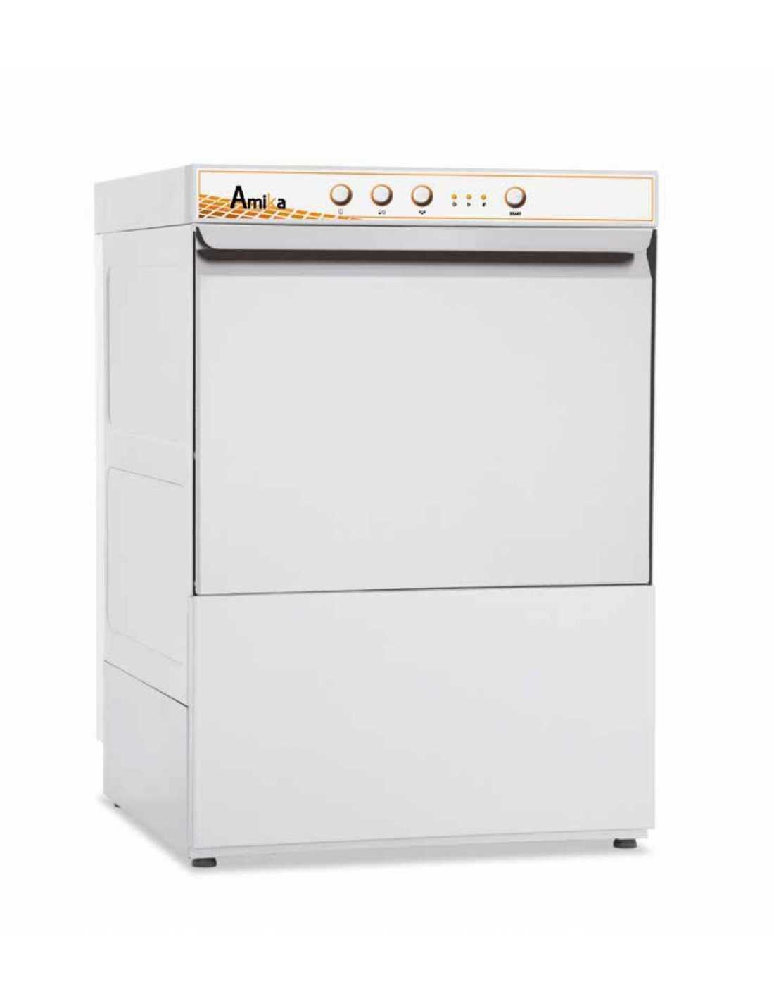 Lavastoviglie sottobanco cesto cm.50x50, serie Amika, altezza utile vasca cm.36,5 , dotata di dosatore brillantante e detergente, fornita di 2 cesti e 1 cestello per posate, comandi meccanici, 2 cicli di lavaggio.