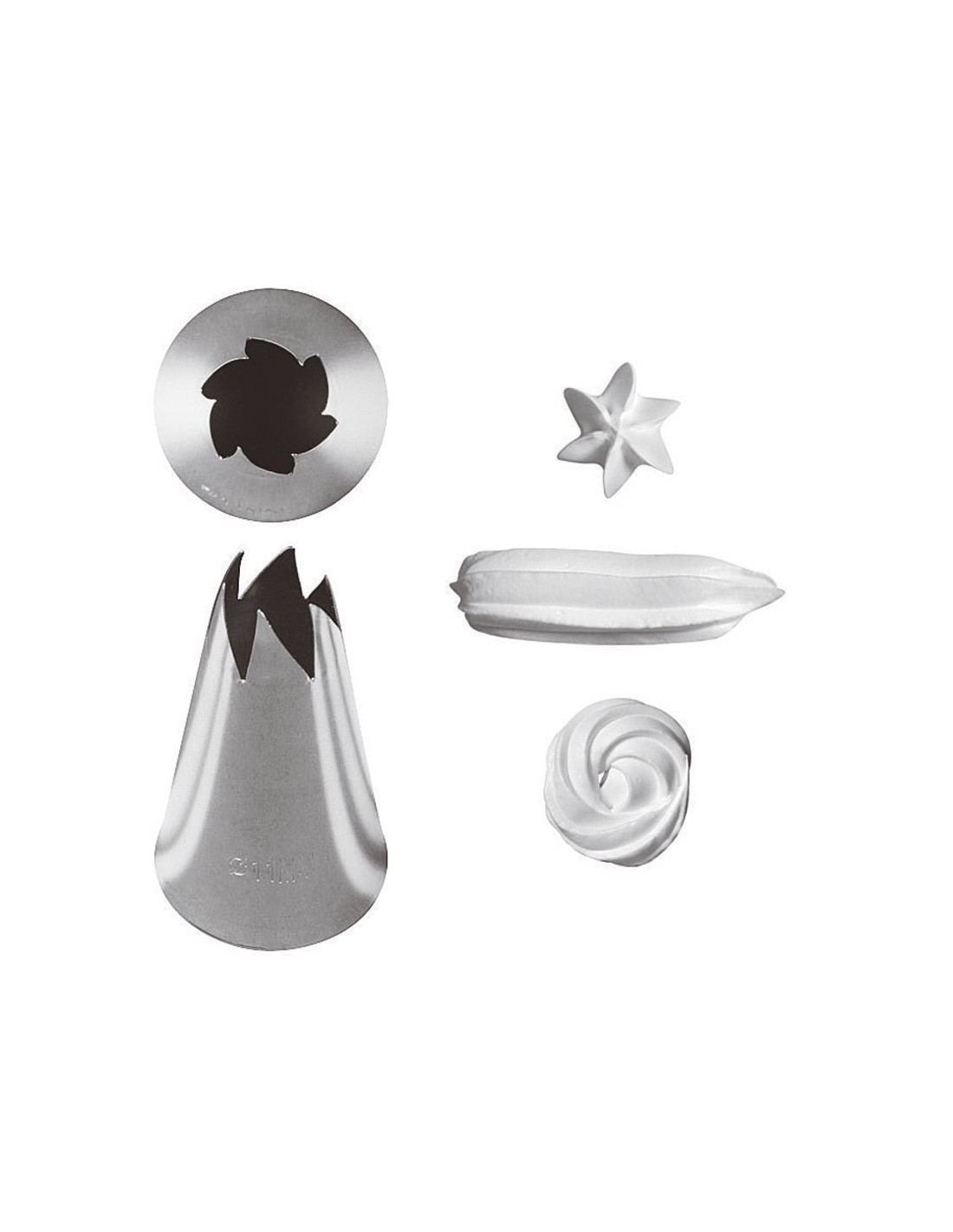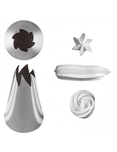Bocchetta pasticceria, kit composto da n.2 pz cm.3,1 a 6 punte, n.2 pz da cm.3,1 a 8 punte, n.2 pezzi da cm. 3,6 a 9 punte, in acciaio inox